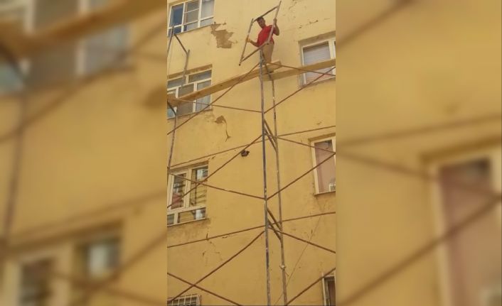 Güvenlik önlemi almadan iskeleye çıkan işçiler korkuttu