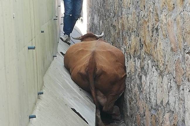 İki duvar arasına sıkışan hayvan kurtarıldı