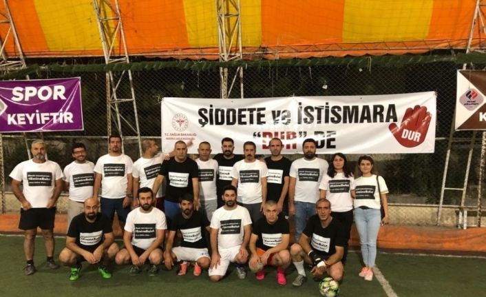 Mardin’de Halk Sağlığı Haftası etkinlikleri kapsamında kadına şiddete tepki göstermek amacıyla sağlık personelleri arasında halı saha maçı düzenlendi.