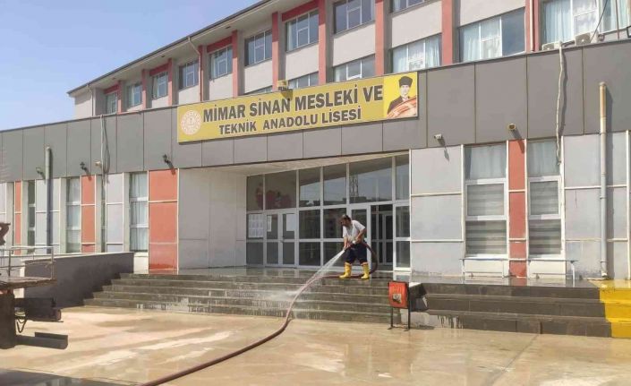 Yeni eğitim ve öğretim dönemine başlayan okulların bahçeleri Kızıltepe Belediyesi ekiplerince yıkanarak temizlendi.