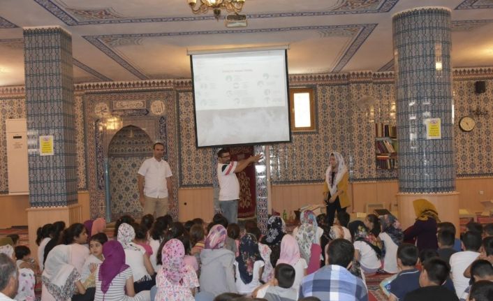 Bu kapsamda Mardin merkez ve ilçelerinde bulunan camilerde açılmış olan yaz Kur’an kurslarında öğrenim gören çocuklara sağlıklı beslenme, sağlıklı su tüketimi, ağız ve diş sağlığı, sağlıklı yaşam için hijyen kuralları hakkında eğitim veriliyor.