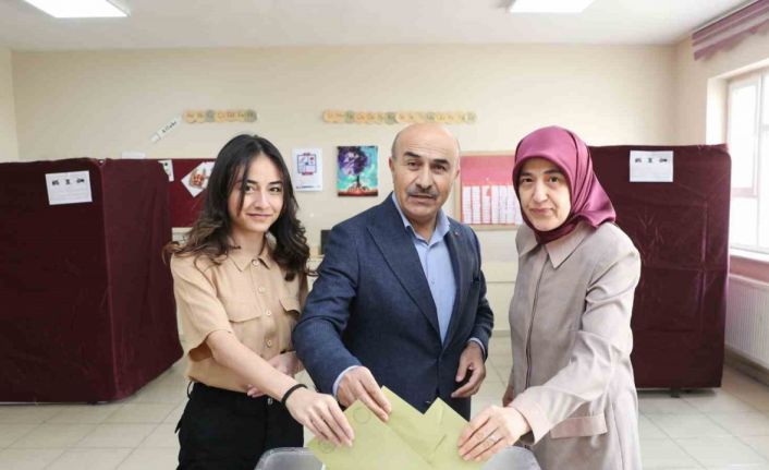 Mardin Valisi Mahmut Demirtaş, eşi Beyhan Demirtaş ve kızı Nida Demirtaş ile birlikte geldiği Zinciriye İlkokulu’nda 1367 numaralı sandıkta oyunu kullandı.