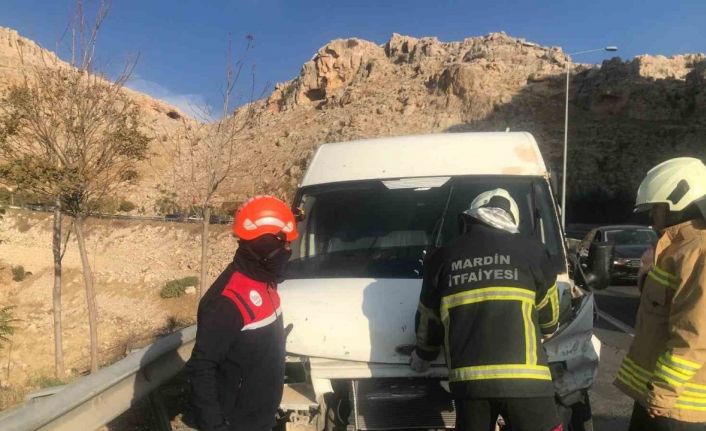 Mardin’de bariyerlere çarpan minibüsün sürücüsü yaralandı