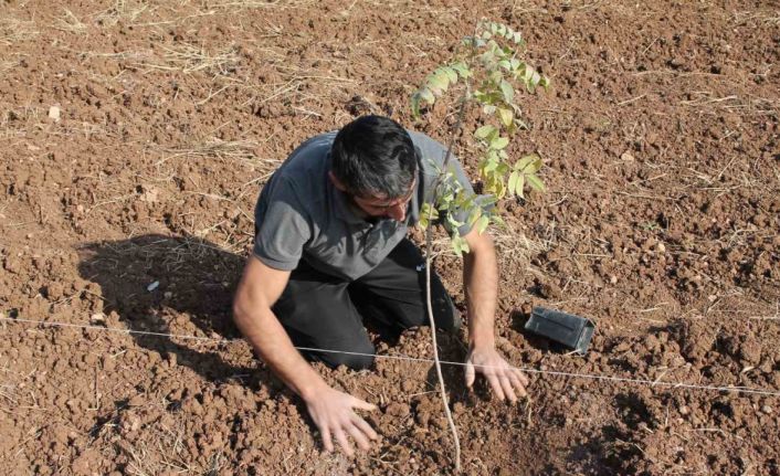 Mardin’in Nusaybin ilçesinde tarıma merakı olan çiftçi, arazisinin etrafını tel örgü ile kapatarak 200 adet sertifikalı fıstık ağacını toprakla buluşturdu.