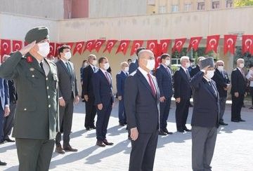 Hükümet Konağı’ndaki Atatürk Anıtı önünde düzenlenen tören saygı duruşu ve İstiklal Marşı’nın okunması eşliğinde ay yıldızlı al bayrağın göndere çekilmesi ile devam etti. Törene, Mardin Valisi Mahmut Demirtaş, gaziler, il protokolü, sivil toplum kuruluşlarının temsilcileri, kamu kurum ve kuruluş müdürleri ile siyasi parti temsilcileri ve vatandaşlar katıldı. Vali Mahmut Demirtaş, törende valilik makamı ve büyükşehir belediye başkan vekilliği adına çelenk sundu.