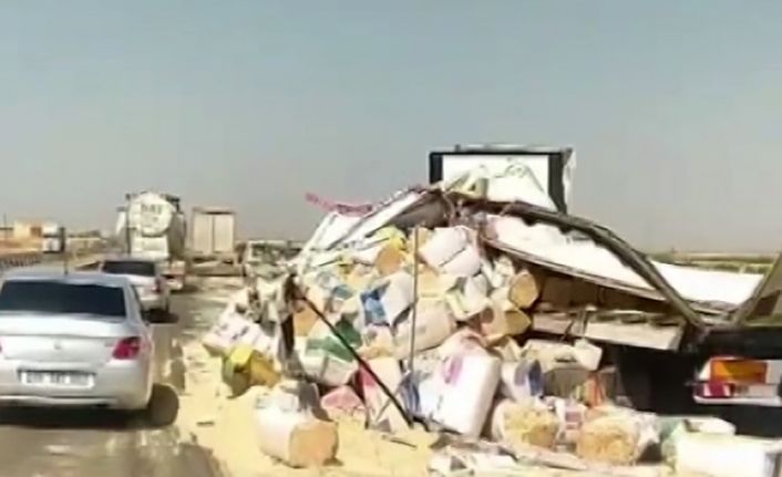 Mardin’in Derik ilçesinde saman yüklü tırın devrilmesi sonucu 1 kişi yaralandı.