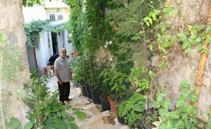 Mardin’in Artuklu ilçesinde mahalle muhtarı ve eşi örnek davranışta bulunarak, tarihi sokağı bahçeye çevirdi.