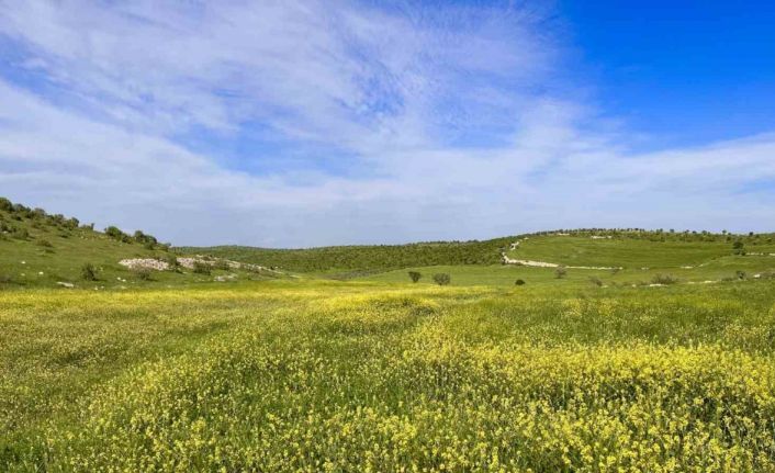 Mardin’de tarım arazilerinde sarı çiçeklerin açmasıyla renk cümbüşü oluştu.