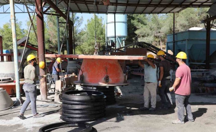 Mardin Su ve Kanalizasyon İdaresi Genel Müdürlüğü, kanalizasyon altyapı çalışmalarında ihtiyaç duyulan beton konik, bilezik, taban ve kapak gibi malzemeleri kendi üreterek tasarruf sağlıyor.