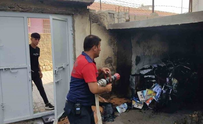 Mardin’in Nusaybin ilçesinde bir evin deposunda çıkan yangında, depodaki malzemeler kullanılmaz hale geldi.