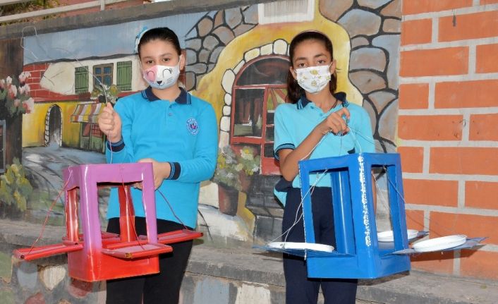 Öğrenciler belediyenin desteğiyle atık malzemelerden kuş yuvası yaptı