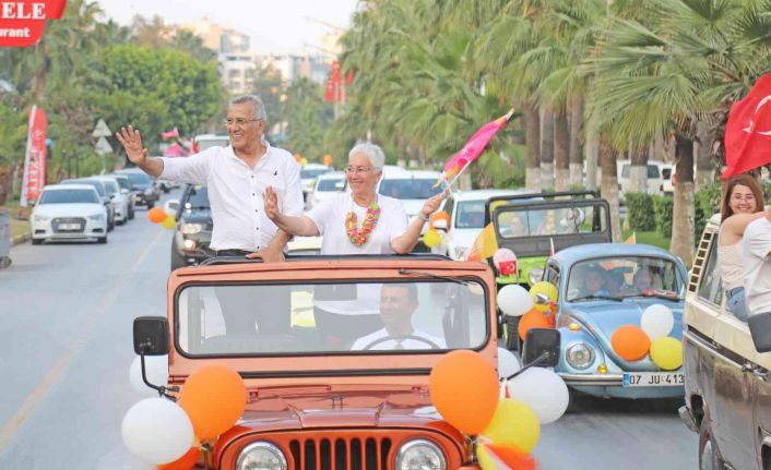 Mezitli Belediye Başkanı Neşet Tarhan da eşi Sembol Tarhan ile birlikte korteje katılan klasik bir araca binerek, Mersin halkını selamladı.