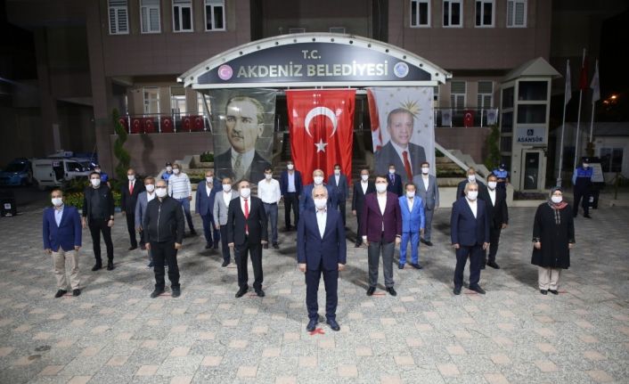 Korona virüs salgını nedeniyle sosyal mesafenin korunduğu ve maskelerin takıldığı törene, Akdeniz Belediye Başkanı Mustafa Gültak, belediye başkan yardımcıları, meclis üyeleri ve birim müdürleri katıldı.