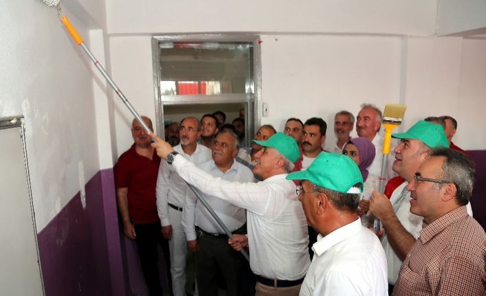 Konuşmaların ardından Başkan Gültak, Kent Konseyi Başkanı Erim ve İl Milli Eğitim Müdürü Koca, ellerine fırça alarak İstiklal İlkokulu’nun bir sınıfının duvarlarını boyadılar.
