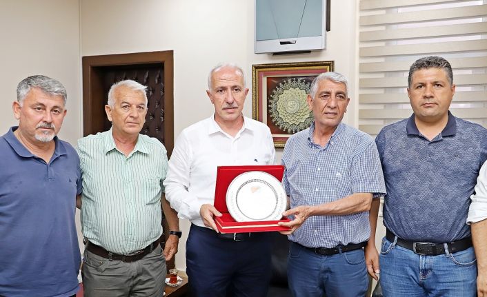Mersin Amatör Spor Kulüpleri Federasyonu Başkanı Mithat Ertaş ve Yönetim Kurulu Üyeleri, Akdeniz Belediye Başkanı Muhammet Mustafa Gültak’a, amatör spora verdiği destekler dolayısıyla plaketle teşekkür etti.