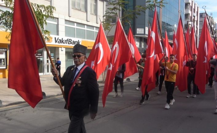 Mersin Tren Garı’nda başlayan ve Cumhuriyet Meydanı’nda devam eden kutlama programında ilk önce gazileri taşıyan temsili tren geldi. Temsili treni karşılayan Vali Ali Hamza Pehlivan, gazilerin takdim ettiği Türk bayrağını öperek teslim aldı. Tören, bando eşliğinde Vali Pehlivan, protokol üyeleri, gaziler, öğrenciler ve vatandaşlardan oluşan kortejin Cumhuriyet Meydanı’na yürümesiyle devam etti. Daha sonra Atatürk Anıtı’na Vali Pehlivan, Akdeniz Bölge ve Garnizon Komutanı Tuğamiral Murat Fırat ile Mersin Büyükşehir Belediye Başkanı Vahap Seçer tarafından çelenk sunuldu. Çelenk sunumlarının ardından öğrenciler şiir okudu, belediye halk oyunları ekibi ise gösterilerini sundu.
