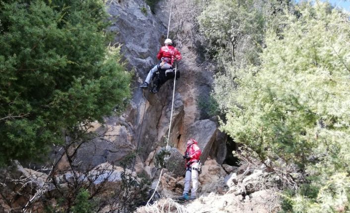 Ekipler, yaklaşık 5 saat süren çalışma sonucu halat yardımı ile ulaştığı keçiyi kurtararak sahibine teslim etti.