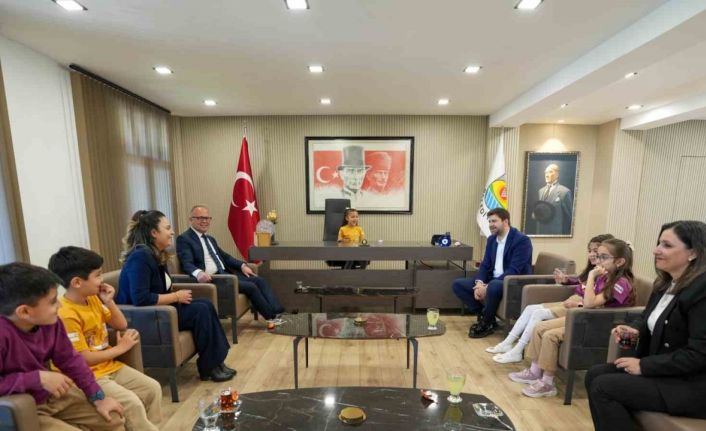 Şehit Cemre Salih Gözen İlkokulu öğrencileri, öğretmenleri eşliğinde Tarsus Belediyesini ziyaret etti. Ziyarette öğrencilerle yakından ilgilenen Başkan Boltaç, 23 Nisan geleneğini sürdürerek makam koltuğunu çocuklara bıraktı.