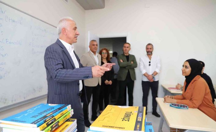 Mersin’in merkez ilçe Akdeniz Belediye Başkanı Mustafa Gültak, öğrencilere ücretsiz üniversite hazırlık kurslarının verildiği belediyeye ait etüt merkezini ziyaret etti, burada kurs gören gençlere, üniversite sınavına hazırlıkta büyük önem taşıyan kaynak kitaplar hediye etti.