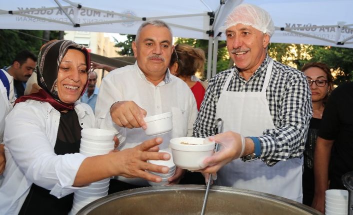 MERSİN (İHA) – Akdeniz Belediye Başkanı Muhammet Mustafa Gültak, Muharrem ayı dolayısıyla Yoğurt Pazarı Parkında düzenlenen etkinlikte, vatandaşlara aşure ikram etti. Mersinlilerin yoğun ilgi gösterdiği etkinlikte bin 500 kişilik aşure dağıtıldı.
