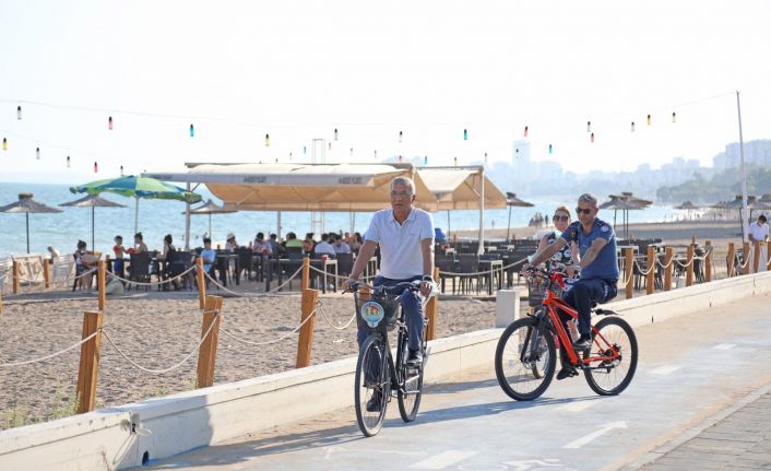 Mezitli Belediye Başkanı Neşet Tarhan, Mezitli’de bisikletle sahil turu yaparak denize giren vatandaşlarla sohbet etti. Pompeiopolis Parkı içerisinde oluşturulan Aile Plajına kadar sahil boyunca bisiklet süren Başkan Tarhan, burada plajın kullanımıyla ilgili görevlilerden bilgi aldı.