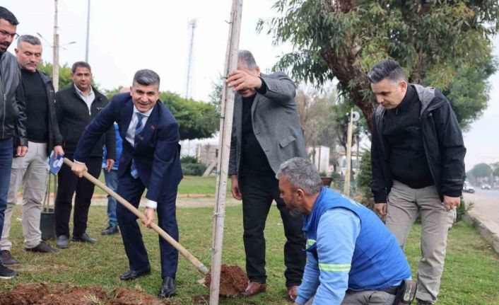 Akdeniz Belediye Başkan Vekili Zeyit Şener, incelemeleri sırasında işçilerle birlikte mevsimlik çiçek ve ağaç dikimi de yaptı.