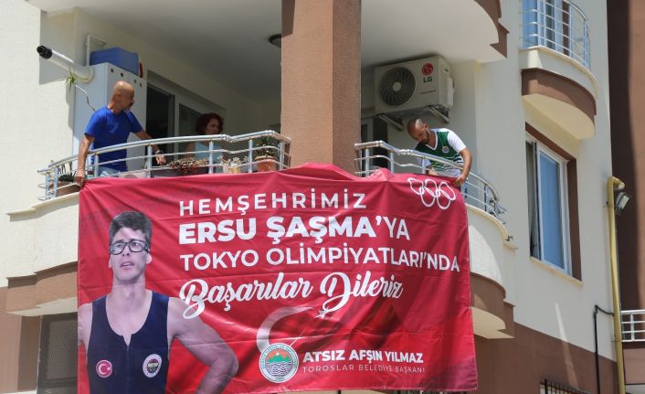 Mersin’in merkez ilçe Toroslar Belediye Başkanı Atsız Afşın Yılmaz, 2020 Tokyo Olimpiyatları’na hazırlanan Mersinli milli sporcular Ersu Şaşma ve Tuğçe Şahutoğlu’nun Yenişehir ilçesindeki evlerine pankart astırarak başarılar diledi.
