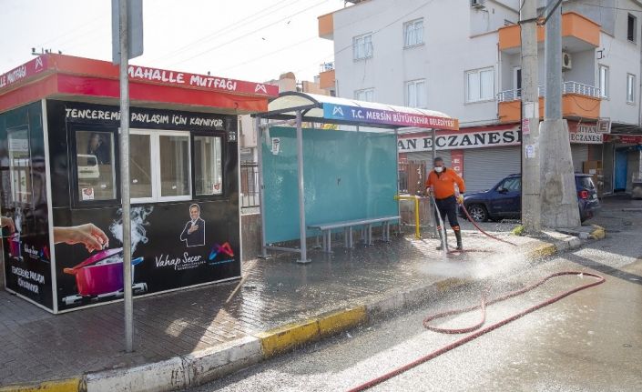 Mersin Büyükşehir Belediyesinden yapılan açıklamaya göre, pazar günü uygulanan sokağa çıkma yasağında kentin birçok noktasında hizmetleri sürdü. Akdeniz ilçesinde çalışma yürüten ekipler Çevre Koruma ve Kontrol Dairesi ekipleri, cadde, kaldırım, sokak ve refüjleri vatandaşlar için hijyenik hale getirdi. Halk sağlığı için devamlı olarak temizlik ve yıkama çalışmalarını vatandaşların yoğun olarak kullandığı bölgelerde sürdüren ekipler, yerlerdeki atıkları süpürge araçlarıyla özenle temizledi. Temizlenen zeminde arazöz araçlarıyla yıkama yapıldı. Dükkan önleri, ATM’ler, duraklar, Mahalle Mutfak büfeleri ve Halk Ekmek büfelerinin önü gibi insan sirkülasyonunun yoğun olduğu her nokta temizlenerek dezenfekte edildi.