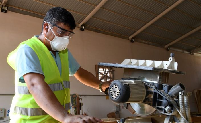 Mersin Büyükşehir Belediyesi’nin marangoz atölyesinde son 5 ayda park, bahçe, okul, sağlık ocağı ve karakollara yerleştirilmek üzere yaklaşık 500 bank, 30 kamelya, 40 piknik masası, saksılar, çöp kovaları ve ofis mobilyası üretti.