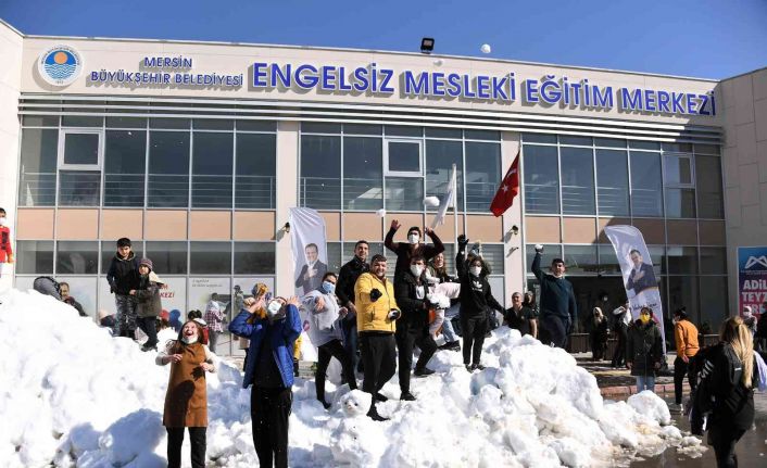 Mersin Büyükşehir Belediyesi, Engelsiz Yaşam Merkezinden yararlanan özel bireyleri kar sürprizi ile mutlu etti. Merkezin bahçesine dökülen karla doyasıya eğlenen özel bireyler, kardan adam yaptı, kartopu oynadı. Yüksek kesimlerde yaşamı zorlaştıran kar, Engelsiz Yaşam Merkezi’nde çocukların eğlencesi oldu.