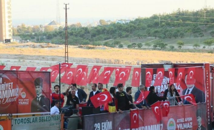 Korteje eşlik eden herkese Türk bayrağı hediye edilirken çocuklar, gençler ve vatandaşlar da alkışlarıyla ve Türk bayraklarıyla cumhuriyeti kutladı. Akşam saatlerine kadar süren kutlamalarda Toroslar halkı hep birlikte saygı duruşunda bulunarak İstiklal Marşı’nı okudu.