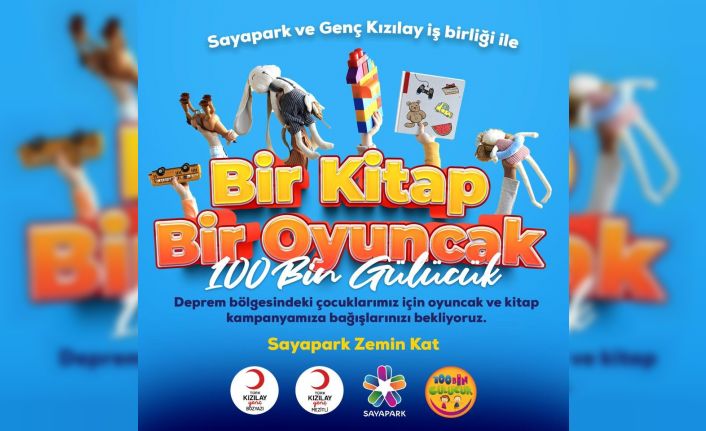Kızılay ve Sayapark Alışveriş Merkezi iş birliğinde depremden etkilenen çocuklar için başlatılan ’100Bin Gülücük: Bir kitap bir oyuncak’ kampanyası, çocukları kitap ve oyuncaklarla buluşturarak, depremin etkisini bir nebze de olsa hafifletmek ve yaraları sarmayı amaçlıyor.