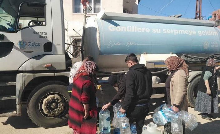 Deprem felaketi ile birlikte bölgede en çok ortaya çıkan ihtiyaçlardan birisi de temiz içme suyu temininde yaşanan sıkıntı oldu. Akdeniz Belediye Başkanı Mustafa Gültak’ın talimatı üzerine, onlarca iş makinesi ve arama-kurtarma faaliyetine katılacak personelin yanı sıra, bölgede yaşayan vatandaşların hem içme suyu hem de temizlik ve hijyen amaçlı su ihtiyaçlarını karşılamak üzere birçok personel ile 2 arazöz görevlendirildi.