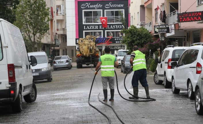 Erdemli Belediyesi, korona virüs salgını ile mücadele kapsamında önlemlerini üst seviyeye çıkarırken, ekipler şehrin dört bir tarafında dezenfekte çalışmaları yapıyor.