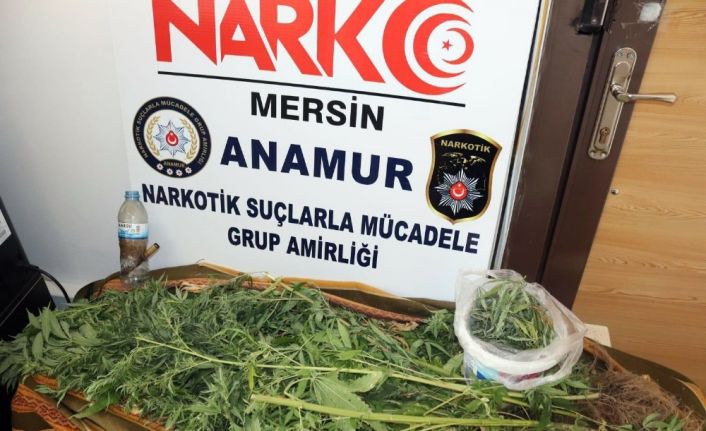 Edinilen bilgiye göre, Anamur İlçe Emniyet Müdürlüğü Narkotik Suçlarla Mücadele Şube Müdürlüğü ekipleri, uyuşturucu madde yetiştiriciliği yaptığı ihbar edilen T.E. isimli şahsın ikametinde yaptıkları aramalarda 40 gram esrar maddesi ile 21 kök Hint keneviri ele geçirdi. Olayla ilgili T.E gözaltına alındı.