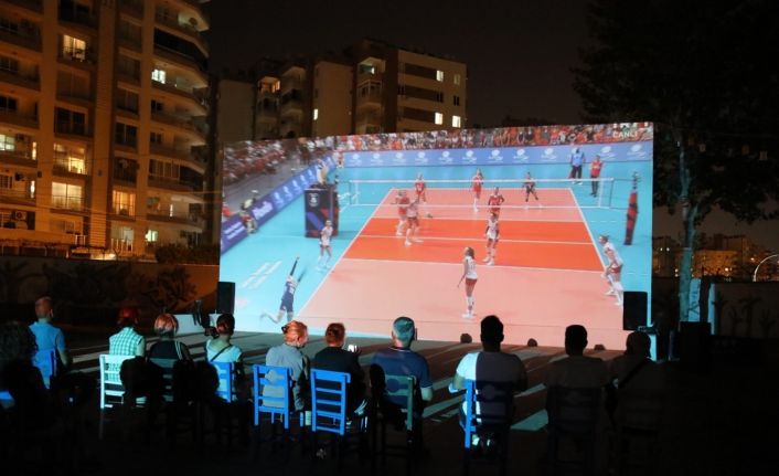 Mersin’in merkez ilçe Mezitli Belediyesinden yapılan açıklamaya göre, yazlık sinema nostaljisiyle birlikte tahta sandalyelerde, gazoz, patlamış mısır eşliğinde milli voleybolcuların maçını izleyen sporseverler, yaptıkları tezahüratlarıyla da geceye ayrı bir renk kattı.