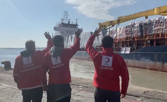 Türk Kızılay’ı tarafından toplanan yardım Gazze’ye ulaşmak üzere gemiyle Mersin limanından hareket etti.