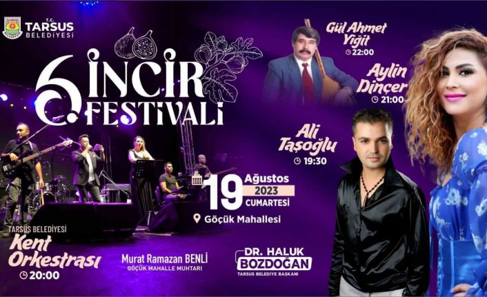 Tarsus Belediyesi tarafından geleneksel olarak düzenlenen 6. İncir Festivali başlıyor. Birbirinden kıymetli sanatçıların sahne alacağı festival, Göçük Mahallesi’nde, 19 Ağustos Cumartesi günü düzenlenecek.