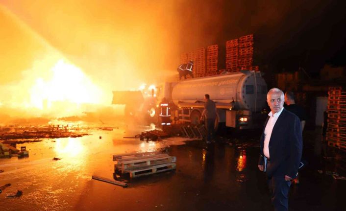 Akdeniz Belediye Başkanı Mustafa Gültak, palet fabrikasında başlayıp kısa sürede büyüyen yangını haber alır almaz olay yerine giderek belediye ekiplerinin de arazözler ve iş makineleri ile destek verdiği söndürme çalışmalarını yerinde inceledi. Gültak; “En büyük tesellimiz, bu büyük yangında can kaybı ve yaralanma olmaması. Çay Mahallesi halkına ve fabrika sahibine geçmiş olsun” dedi.