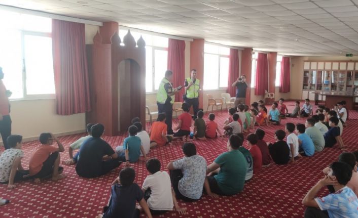 Mersin’in Bozyazı ilçesinde jandarma ekipleri, Kur’an kursu öğrencilerine trafik semineri verdi.