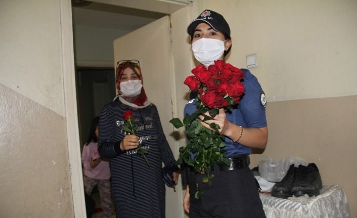 Tarsus İlçe Emniyet Müdürlüğüne bağlı kadın polisler, şehir merkezi başta olmak üzere, köy pazarı ve evlerde bulunan 500 kadına gül vererek, Anneler Günü’nü kutladı.
