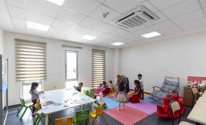 Mersin Büyükşehir Belediyesi Sosyal Hizmetler Dairesi Başkanlığının Halkkent MERCEK’te eğitim alan kadın kursiyerler için artık bir de ‘çocuk oyun odası’ hizmeti sunuluyor. Yeni kurulan oyun odasıyla birlikte, anneler gönül rahatlığıyla derslere katılırken, 3-6 yaş arasındaki çocuklar da çocuk gelişim uzmanı eşliğinde yaşlarına uygun oyun ve etkinliklerle vakit geçiriyor.
