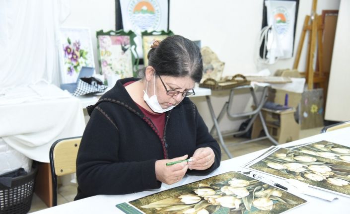 Sağlık Mahallesi’ndeki Adnan Kahveci Parkı’nın içerisinde bulunan kurs merkezinde, kağıt rölyef ve ahşap boyama kurslarına katılan özellikle ev hanımları, hem günün stresini atıyor hem de el becerilerini geliştiriyor. Pandemi şartlarının göz önüne alınarak verilen kurslardan oldukça memnuniyet duyduklarını belirten kursiyerler, bu kursları açtığı için Toroslar Belediye Başkanı Atsız Afşın Yılmaz’a teşekkür etti.