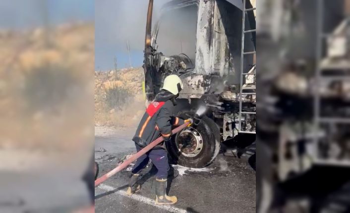 Mersin’de kupa kısmında yangın çıkan kamyon kullanılamaz hale geldi.