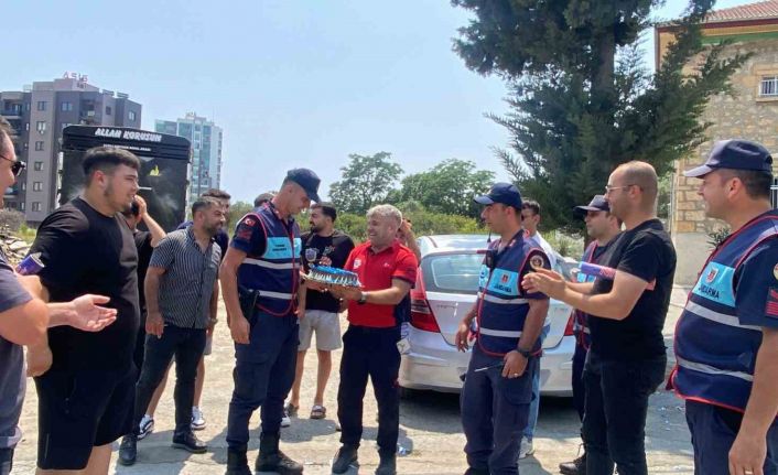 Mersin’de itfaiyeciler ve gençler, ’kavga’ ihbarı yapmaları üzerine bölgeye gelen jandarma ekiplerinin kuruluş yıl dönümünü kutladı.