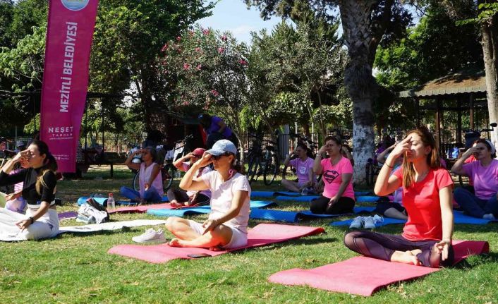 MERSİN (İHA) – Mezitli Belediyesi, meme kanserine dikkat çekmek amacıyla Soli Pompeiopolis Parkında düzenlenen yoga etkinliğine destek verdi. Etkinliğe katılanlara meme kanseri hakkında bilgiler verildi.