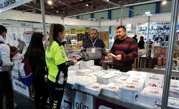 Mersin Trafik Denetleme Şube Müdürlüğü ekipleri, 6. Mersin Kitap Fuarında vatandaşları trafik konusunda bilgilendirdi.