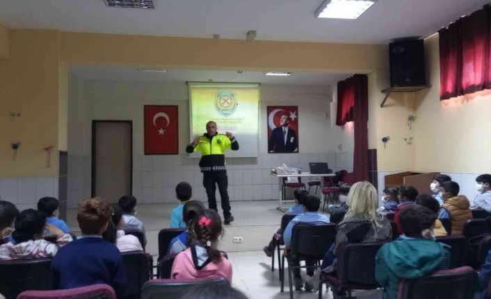 Mersin’de trafik polisleri, ilkokul öğrencilerine eğitim verdi.