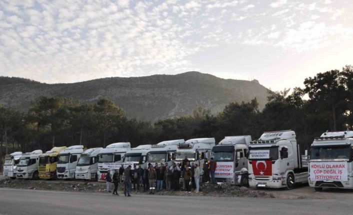 Mersin’in Silifke ilçesinde kamyoncular, bölgede faaliyet gösteren bazı fabrikaların nakliye işlerini yerel halk yerine şehir dışından gelen taşeron firmalara vermesine tepki gösterip basın açıklaması yaptı.
