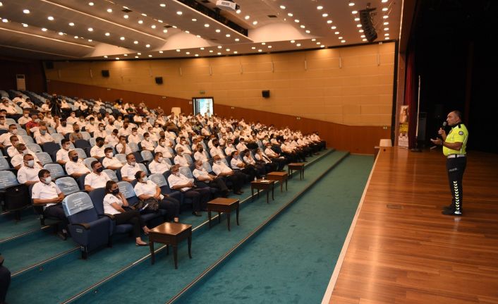 Mersin Büyükşehir Belediyesi bünyesinde hizmet veren toplu taşıma şoförlerine yönelik ‘trafikte önce yaya’ eğitimi düzenlendi. Belediye bünyesinde hizmet veren yaklaşık 750 şoförün gruplar halinde aldığı eğitimin ana konusunu trafikte yaya önceliği oluşturdu.